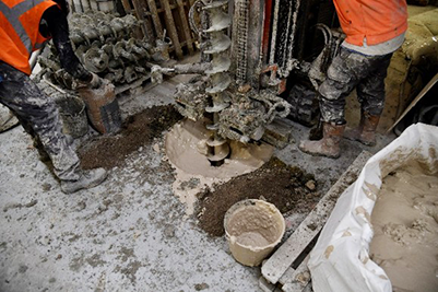 Drilling and new piles set up deep in the ground to support the compute room concrete floor.